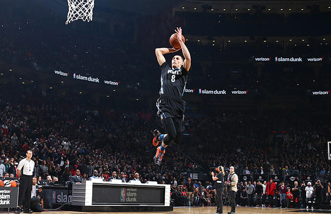 加拿大航空中心球馆弯伏着庞然身躯,在多伦多凛冽的朔风刮卷下吞吐着汹涌奔流的人潮。斯蒂芬-库里与克莱-汤普森在三分大赛的巅峰竞秀为一六年全明星单项赛增辉添彩,而在响彻北境的热烈欢呼声下,泰然自若的扎克-拉文正打量着一旁摩拳擦掌的安德烈-德拉蒙德、威尔-巴顿与阿隆-戈登——他们将在随后举办的扣篮大赛上挑