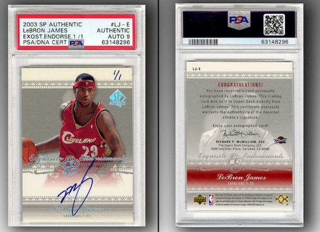 北京时间8月11日,据美媒报道,一张由詹姆斯签名新秀球星卡将被拍卖,预计成交价在70-120万美元之间。 值得一提的是,这是詹姆斯2003-04赛季的签名卡,该卡的PSA评级为9,被原装保存了近20年。 在今年4月份,詹姆斯的新秀卡成交价为172万美元,另一张评级9.5的成交价180万。 (Emil