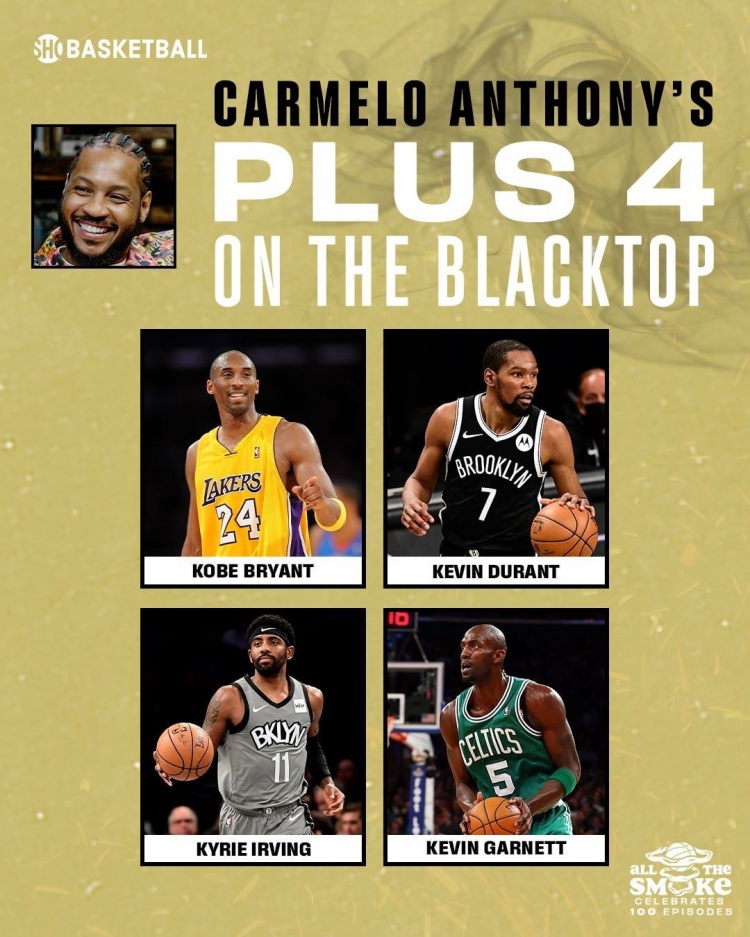 直播吧8月22日讯 湖人新援安东尼在节目中被问到在街球场打球会挑选哪四位球员作为队友?安东尼给出的名单是:科比、杜兰特、欧文和加内特。(Sera)【来源:直播吧】