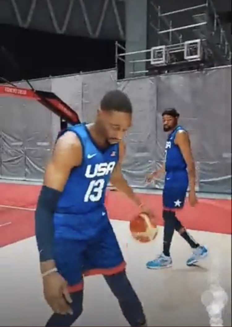 直播吧7月23日讯 美国男篮今日进行了定妆照的拍摄,拍摄现场,杜兰特和阿德巴约还有了一个“小摩擦”。新闻链接>>>杜兰特打趣埋怨阿德巴约:你要学会尊重别人杜兰特认为阿德巴约没有将他的进球还给他,随后还登上了推特并@阿德巴约表示,小兄弟你得学会尊重默认的规则。不过阿德巴约也不甘示弱,