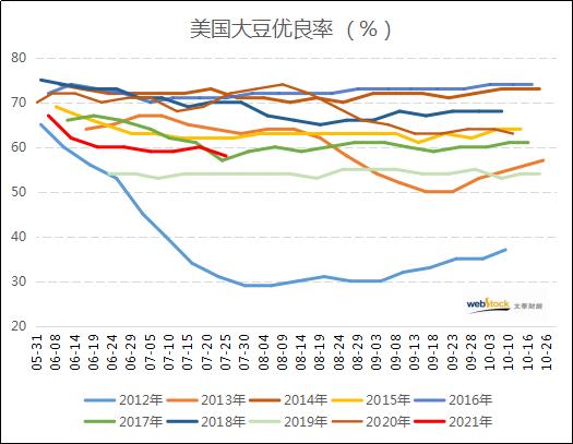 下载新浪财经APP,查看更多期货资讯和微博汇观点 原标题:作物生长意外恶化 美豆优良率明显下滑 来源:文华财经 因密西西比河西部种植地带的旱情令作物承压,上周美国玉米和大豆作物优良率意外恶化。美国农业部(USDA)周一公布的每周作物生长报告显示,截至2021年7月25日当周,美国大豆生长优良率为