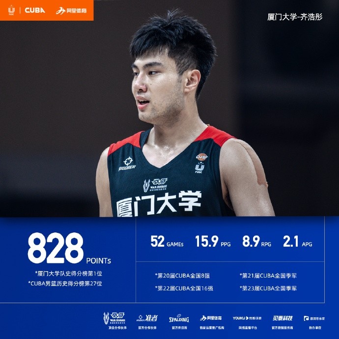 直播吧7月7日讯 据福建浔兴贴吧透露,厦门大学男篮球员齐浩彤试训拥有状元签的福建男篮。此前有消息称,厦门大学后卫黎伊扬试训过福建男篮,他是齐浩彤的队友。齐浩彤今年23岁,身高2米,体重100公斤,司职前锋。他是厦门大学男篮队史得分王,出战52场比赛,一共拿下828分,场均得到15.9分8.9篮板2.