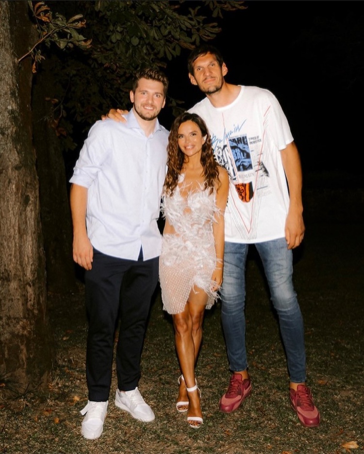 直播吧8月12日讯 东契奇正式与独行侠达成5年2.07亿美元的续约合同,好友博班也以两年700万美元续约独行侠。今天,克罗地亚女歌手Severina Kojić更新了instagram,晒出自己与两位球员一起开party的照片。Severina写道:“美好的夜晚,美好的人!东契奇书写了历史,和他一起