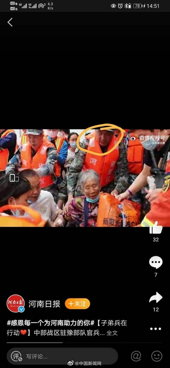 河南水灾牵动人心,有网友在救援视频中发现一位年长战士,神似曾参与国庆70周年大阅兵的共和国上将朱生岭。@中国新闻网 与有关部门核实发现,这位战士正是中部战区上将政委朱生岭。网友截屏的视频,是7月22日郑州阜外华中医院转移安置群众的救援现场。此次河南灾情中,从将军到战士,人民子弟兵真的是用行动在践行:
