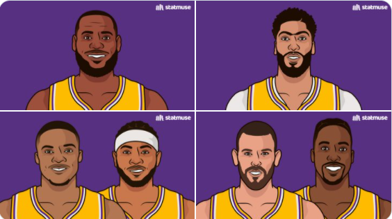 北京时间8月4日,美国NBA数据媒体StatMuse统计了湖人现有阵容的累积荣誉情况。 具体情况如下: 5次MVP(詹姆斯4次、威少1次) 4次DPOY(霍华德3次、小加索尔1次) 4次FMVP(詹姆斯4次) 55次全明星(詹姆斯17次、安东尼10次、威少9次、霍华德8次、浓眉8次、加索尔3次) 4