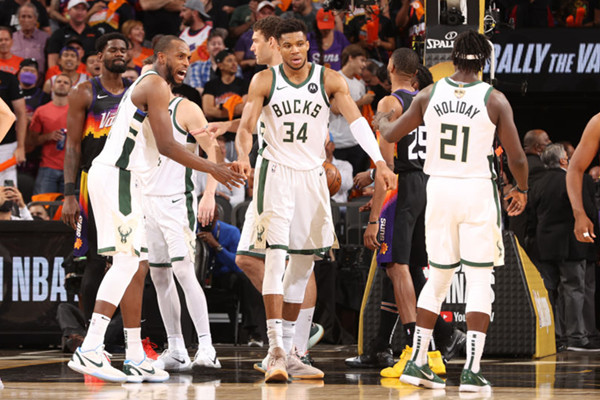 北京时间7月1r8i,在今日的总决赛中,雄鹿客场123-119力克太阳。总决赛3-2领先。 本场比赛,雄鹿前锋扬尼斯-阿德托孔博上场41分钟,23投14中,得到32分9篮板6助攻;克里斯-米德尔顿上场44分钟,23投12中,得到29分7篮板5助攻;后卫朱-霍勒迪上场42分钟,20投12中,得到27分