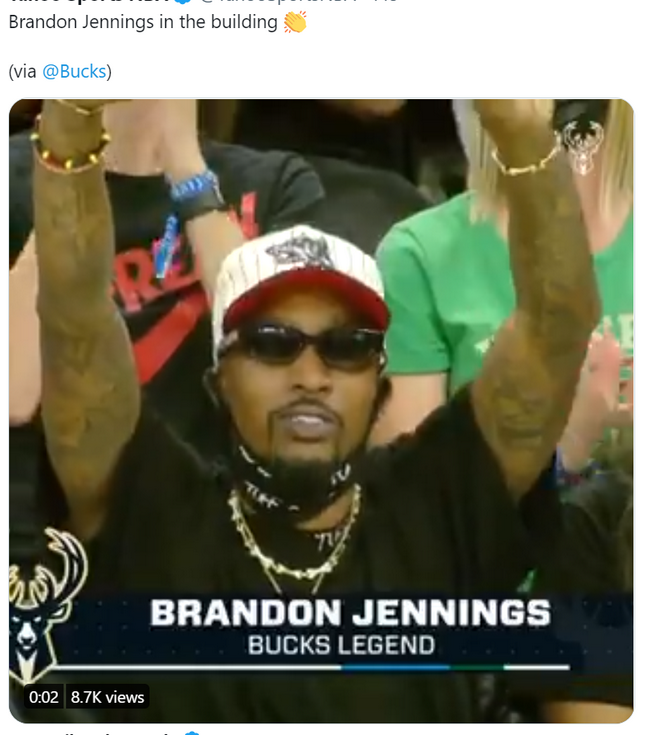 北京时间7月21日,总决赛G6开打,本场比赛吸引了众多NBA名宿到场观战,其中,雄鹿名宿布兰登-詹宁斯也到场观战。 同时,雄鹿官方也是打出字幕:“布兰登-詹宁斯,雄鹿传奇”。 要知道,詹宁斯曾带领雄鹿闯入季后赛,说是要“6场内解决战斗”,但是随后球队就被横扫。但是,詹宁斯在雄鹿曾经有过单场55分的表