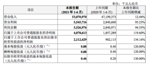 原标题:净利创历史新高:中兴通讯既有“定海神针”,也有翻江心气 来源:腾讯新闻8月27日晚间,中兴通讯发布2021年半年度报告。报告显示,中兴通讯上半年实现营业收入530.7亿元,同比增长12.4%;净利润为40.8亿元,同比增长119.6%;扣除非经常性损益的净利润为21.1亿元,同比增长1