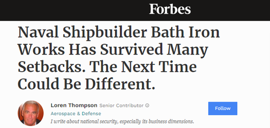 据美国媒体《福布斯》网站报道,自位于美国缅因州的巴斯钢铁造船厂向美国海军交付第一艘炮艇以来的128年里,这个美国历史最悠久的船厂经受了许多挫折。