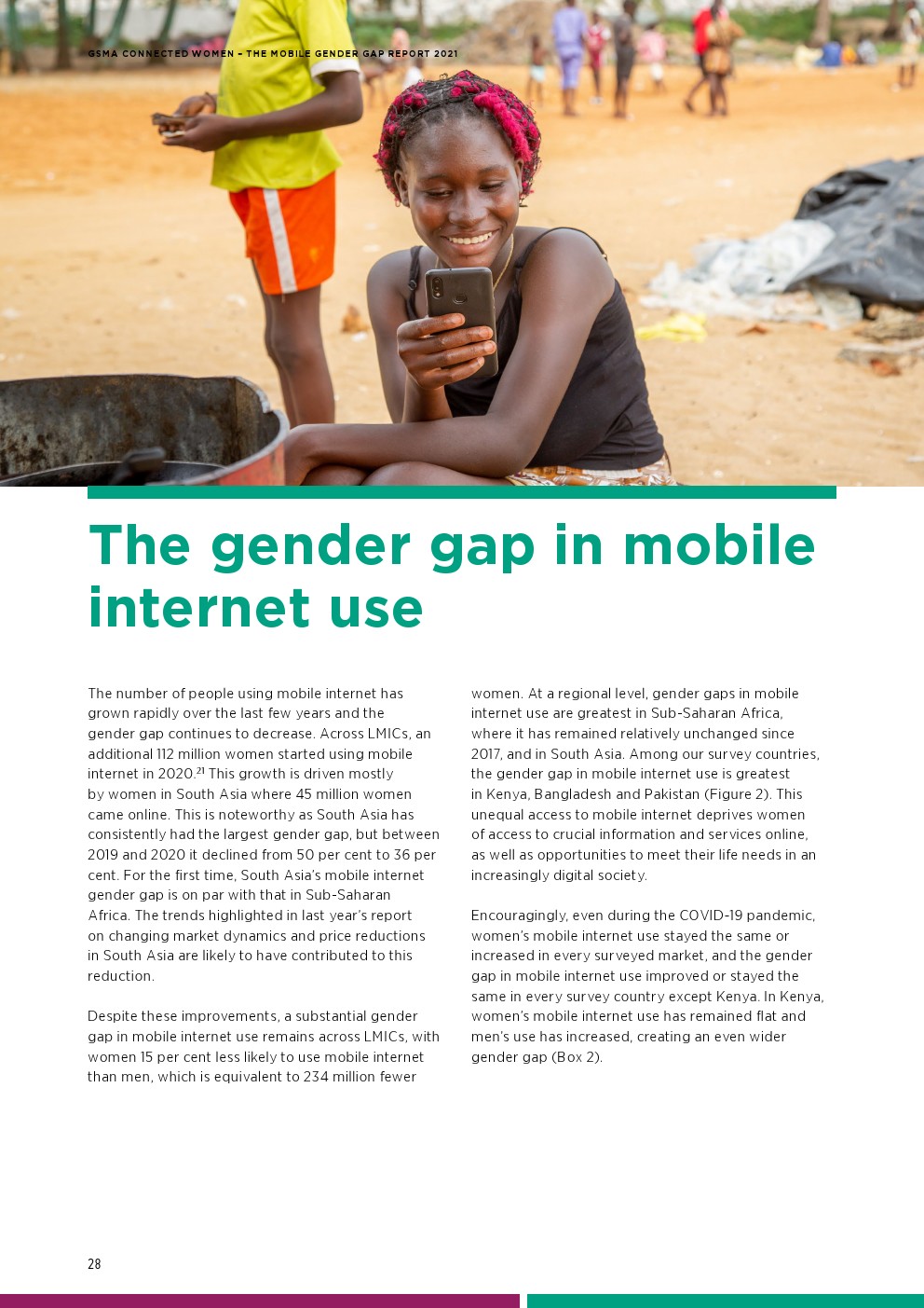 GSMA发布了“2021年移动性别差距报告”。南亚使用移动互联网服务的女性人数创下了新纪录。尽管新冠大流行,性别差距从去年的19%缩小到15%。
