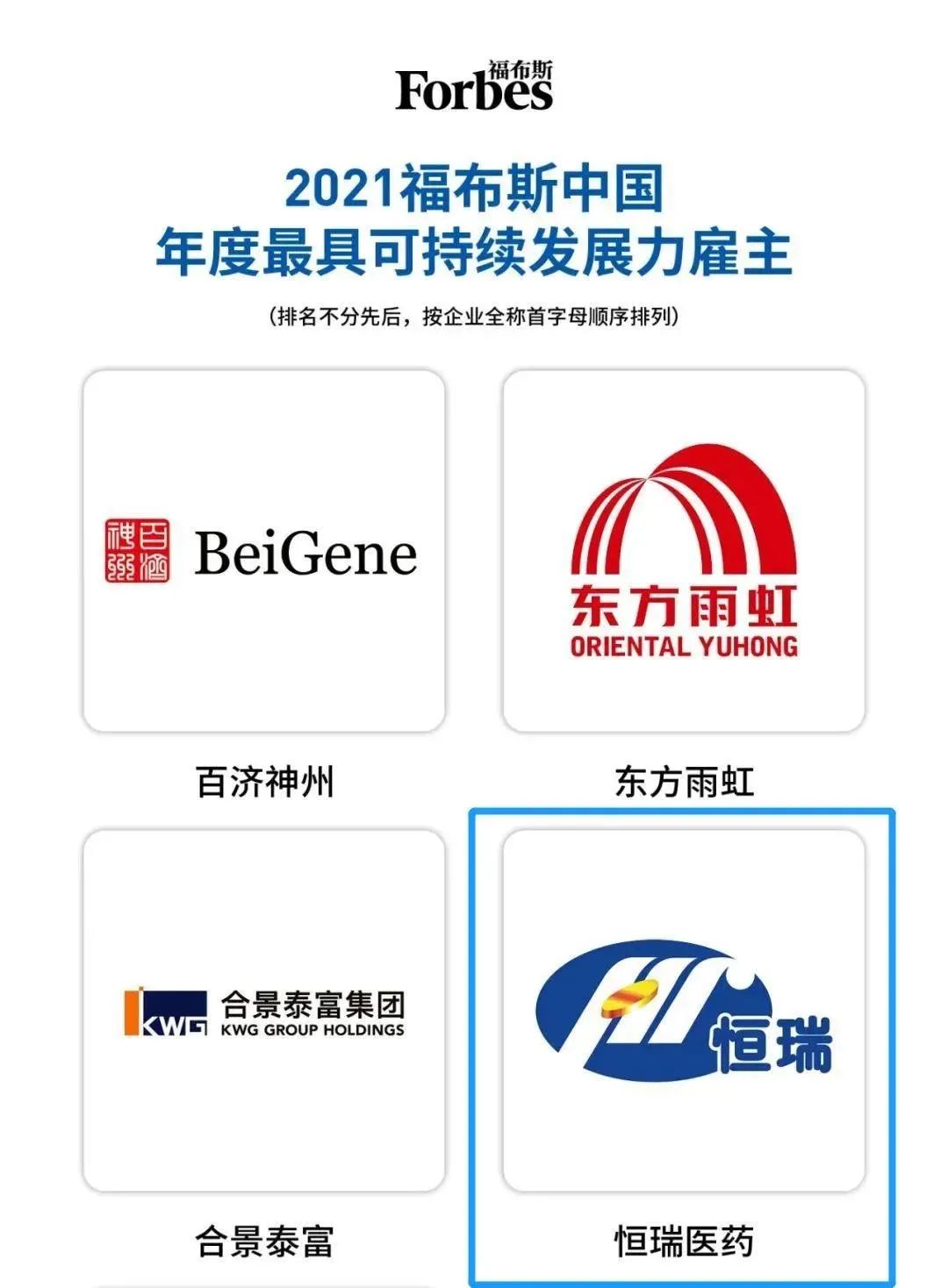 6月28日,福布斯中国联合全球领导力与高管人才咨询公司罗盛咨询公司发布“2021福布斯中国·最佳雇主”年度评选主榜单及子榜单,恒瑞医药上榜2021福布斯中国年度最佳雇主,以及2021福布斯中国年度最具可持续发展力雇主名单。这是福布斯中国首次推出“中国最佳雇主”系列评选。