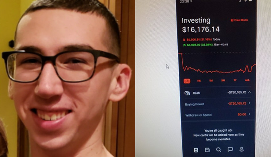 6月11日,亚历克斯在父母家中,午夜前他收到一封电子邮件,通知他罗宾汉帐户已被限制。他打开应用程序,看到他的账户上似乎显示了超过73万美元的负现金余额。他开户时选择不开设保证金账户,正是为了避免任何灾难性的损失。但账户现在怎么会出现比他拥有的1万6000美元资产还要大的损失?他想不通。