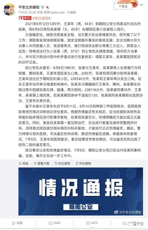 综合事实认定和轻伤二级的司法鉴定意见,朝阳公安分局于昨日晚宣布:
