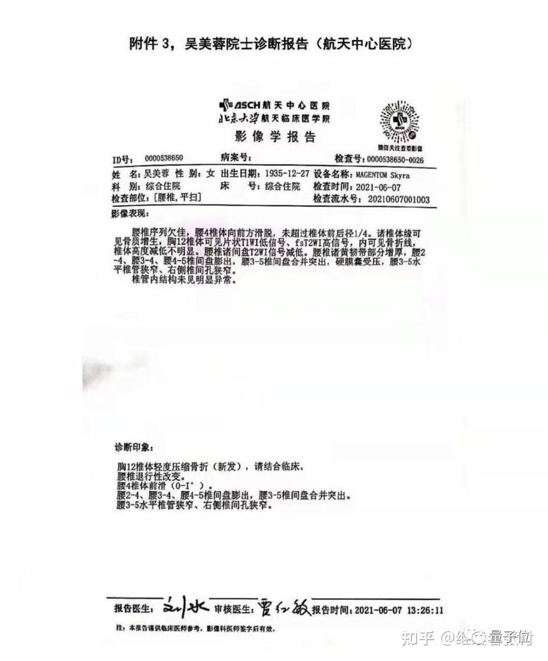 吴院士则情绪和身体大受打击,当晚前往医院住院治疗。诊断结果为:脊椎断裂。