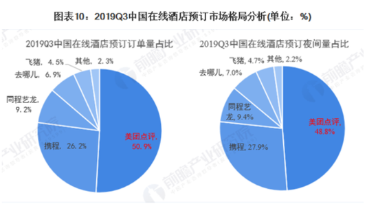 分散来看,以饿了么和飞猪为代表,在其所在的细分市场上,无论是市占率还是营收情况,二者均低于美团。