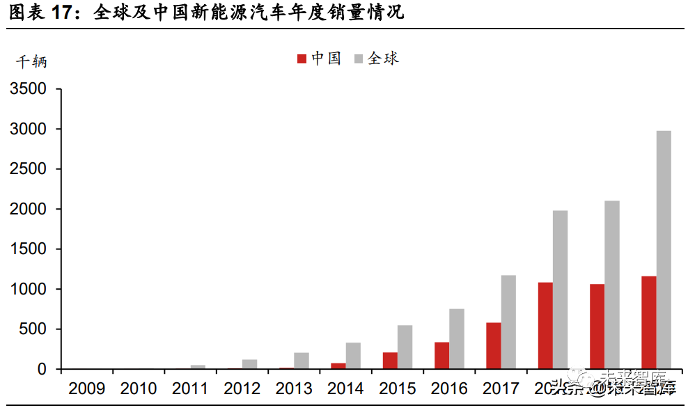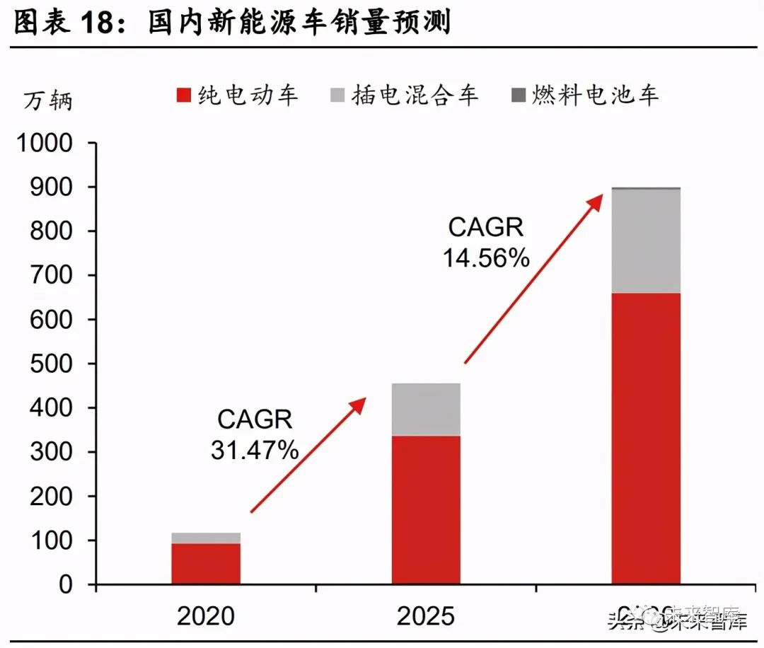就未来需求而言,根据 IEA 既定政策情形预测,至 2025 年中国新能源车销 量总和将达 456 万辆,2020-2025 年 CAGR 约为 31.47%;至 2030 年,中国 新能源车销量将达 900 万辆,2025-2030 年 CAGR 约 14.56%。在同样的情形 假设下,全球新能源车销量至 2025 年将达 1143 万辆,至 2030 年进一步提升 至 2243 万辆。