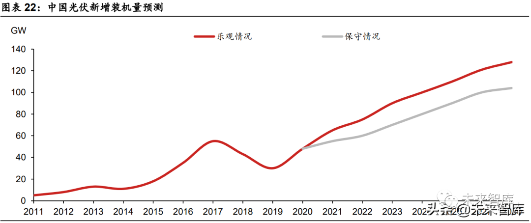 在需求方面,随着“碳中和”理念的深入,全球各个国家及地区逐步加大 对可再生能源的研究与应用,未来全球电力生产结构将逐渐向可再生能源发 展,其中光伏发电将是增长速度最快的可再生能源。2020 年国内光伏新增装机 量达到 48.2GW,同比增加 60.1%,创历史第二高;根据中国光伏行业协会预 测,到 2030 年新增装机量有望达到 105GW-130GW。从全球光伏市场来看, 未来 5 年全球光伏市场将进入快速攀升通道,并迎来较长时间的持续发展机 遇。虽受疫情影响,2020 年全球光伏新增装机量仍达到 150-170GW,并且根 据中国光伏行业协会预测,2030 年新增装机量有望达到 310-360GW。