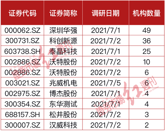 此外,记者注意到,7月以来,多家知名资产管理人调研了华为产业链的相关公司(见表2)。其中,百亿私募盘京投资和王亚伟旗下的千合资本于7月1日分别调研了深圳华强和泰晶科技。据公开资料显示,深圳华强为华为海思全系列产品代理商,泰晶科技有17款产品通过了华为海思等应用方案商的认证。