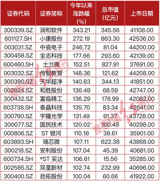 但需要注意的是,在这些公司中也不乏市场表现与业绩表现不匹配的公司。如在今年以来涨超100%的公司中,就出现了ST银河和国民技术两只业绩较差的公司。那么,当其业绩长期不能兑现之后,极有可能遭到市场的“脚投票”。