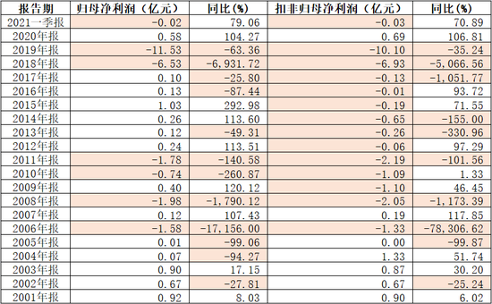 具体来看,据公开资料显示,ST银河此前表示其子公司四川永星与华为已合作20多年,是华为的战略合作伙伴,主要为华为提供4G、5G通信设备用射频元件。而据ST银河去年年报显示,四川永星去年实现营业收入为3.25亿元,占公司总营业收入(11.06亿元)的比重为29.39%,即四川永星与华为的合作确实为公司贡献了较多的营业收入。但记者梳理ST银河2001年以来的财报发现,公司的业绩并不稳定,尤其是在2008年~2019年间,公司的扣非净利润连续12年为负值(见图2)。