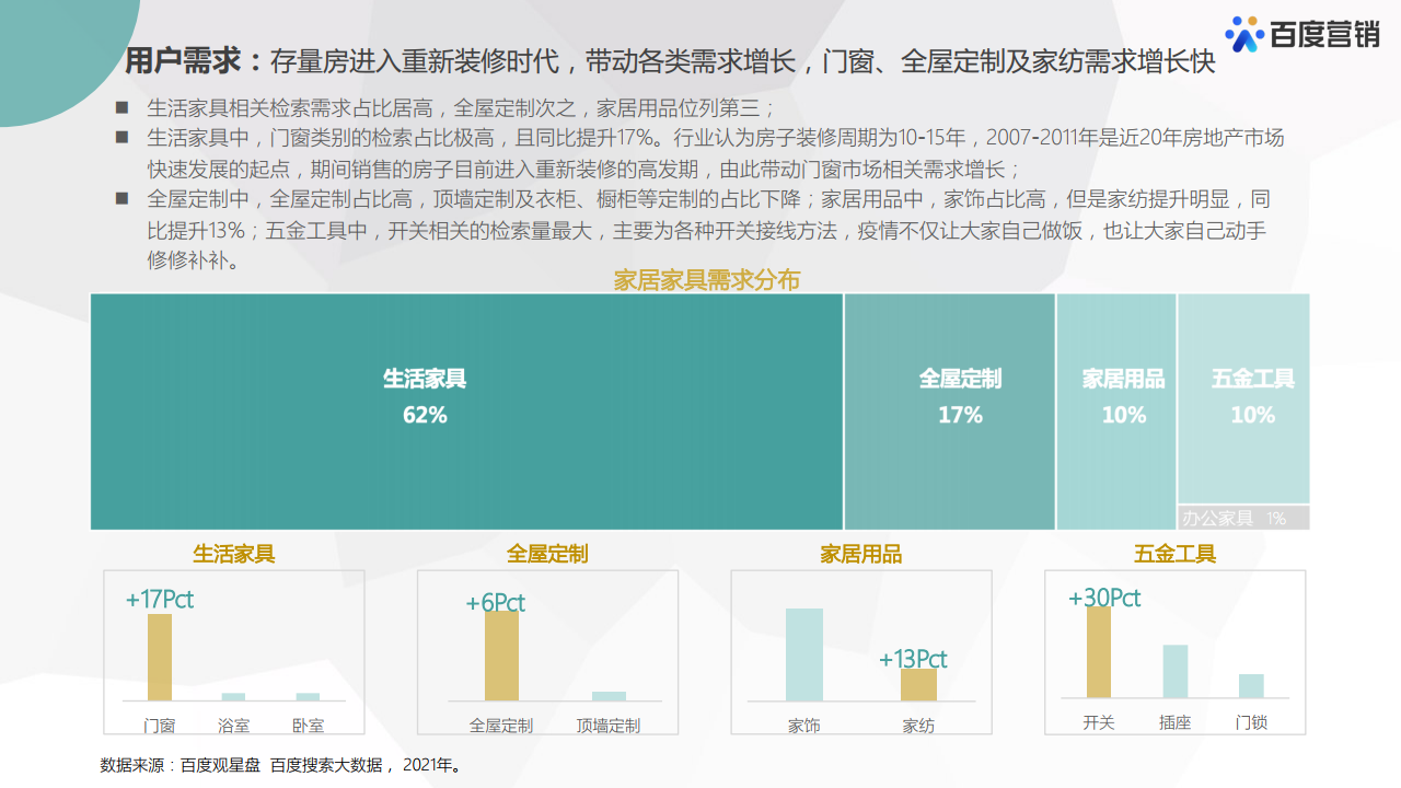 家居是承载美好生活的品质表达,疫情让人们开始认真审视自己的居住环境,疫情后家居家具行业逐渐恢复。今年消费者需求发生了哪些变化?百度营销研究院与百度直销管理部联合产出此报告,深度洞察家居家具行业消费者特征、决策链路、品牌偏好等,并给出针对性营销建议,助力企业把握趋势、抓住机遇!