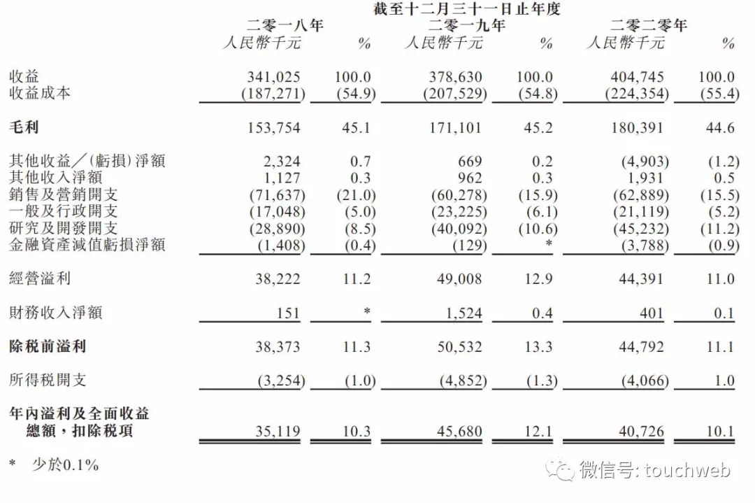 望尘科技2018年、2019年、2020年期内利润分别为3512万元、4568万元、4073万元,期内利润率分别为10.3%、12.1%、10.1%。