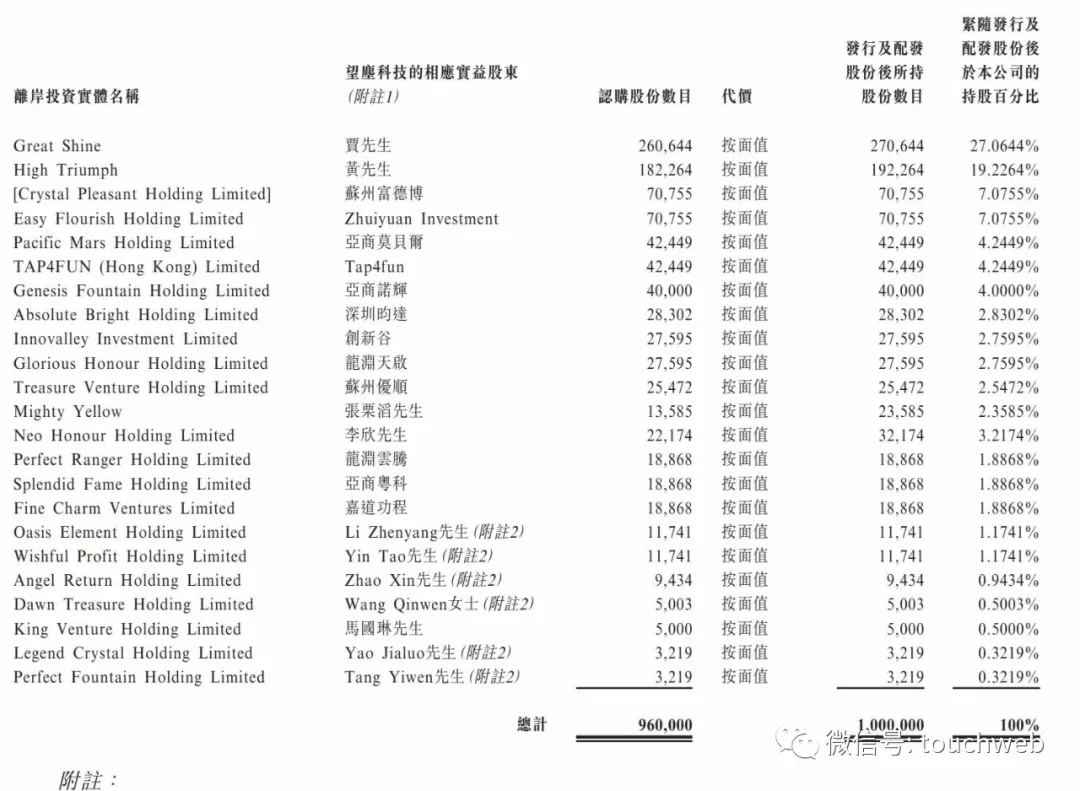 Tap4fun也是望尘科技的股东之一,持股4.2449%。亚商诺辉持股为4%,创新谷持股为2.7595%。