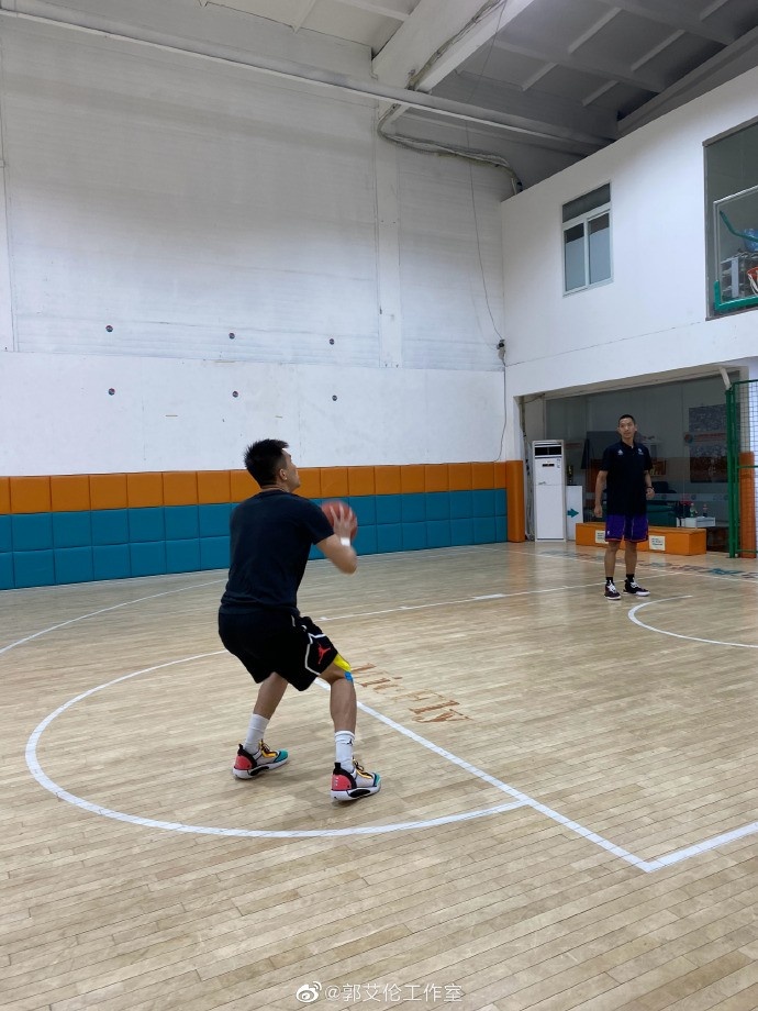 郭艾伦工作室微博晒图写道:“边康复边训练,还是那么的刻苦认真,虽然只能运球和定点投篮,因为伤势不能做高强度的训练,但是伦哥的训练态度把教练们的状态都带动起来了,直说伦哥真的太敬业了。为伦哥点赞????#郭艾伦# ”