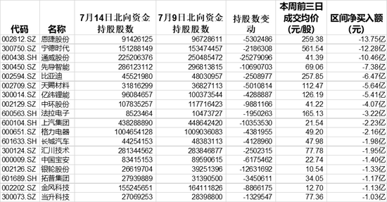 此外,先导智能、比亚迪、天赐材料本周前三个交易日遭北向资金净卖出超过5亿元,中环股份、中国宝安、当升科技等热门新能源个股也遭北向资金不同程度了结。