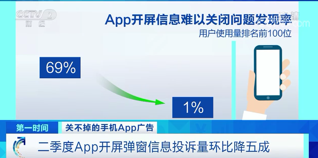 据统计,今年二季度App开屏弹窗信息投诉量环比下降50%;利用弹窗误导用户点击跳转问题的发现率,由90%下降至12%。
