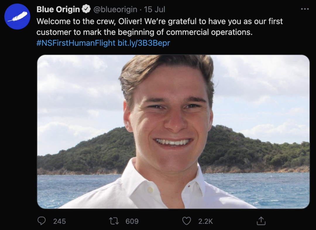 最近,贝索斯的蓝色起源凭借着一位18岁的神秘乘客Oliver Damen又回到了舆论的风口浪尖上。