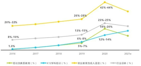 文化课与素质教育将银网中心的教育机构分为两类,一类转为线上,一类依然借助线下优势稳步前行。而在我国整体素质教育行业发展中,2021年的艺术教育、语言能力培养、体育教育等都将有所增长。素质教育正成为教育赛道中的新“宠儿”。