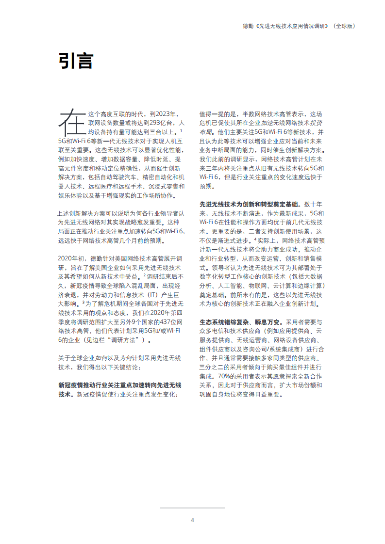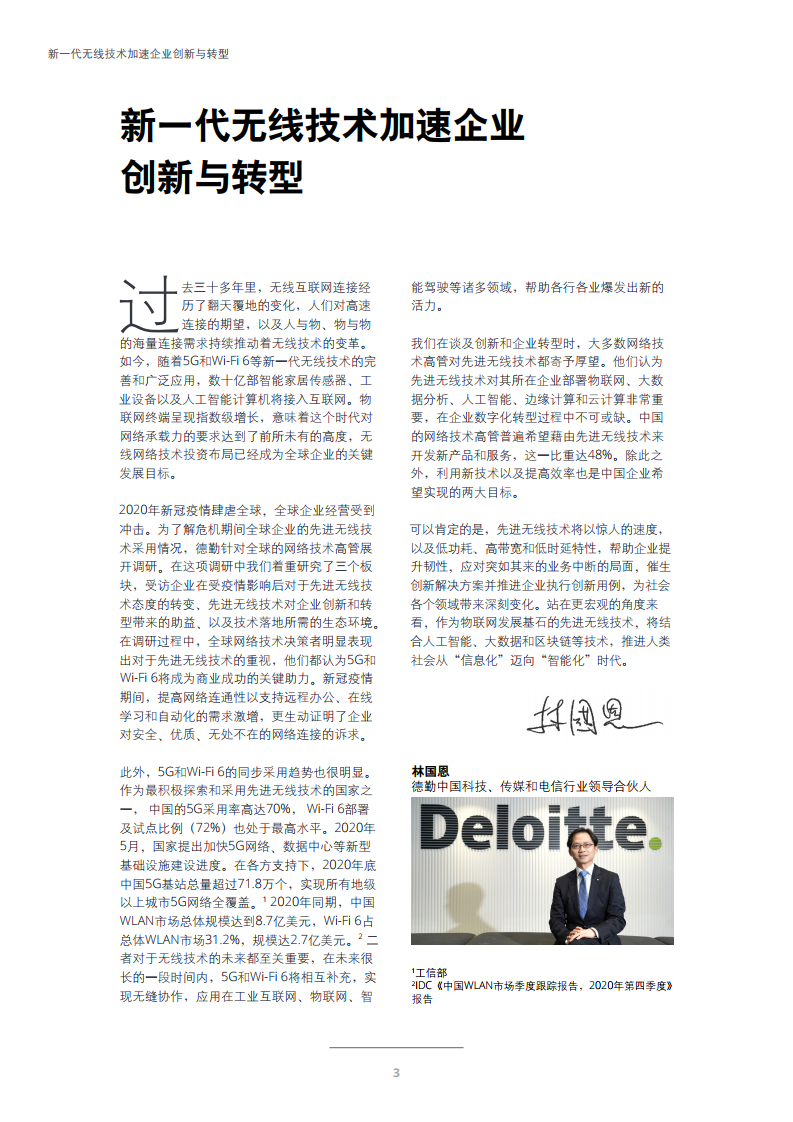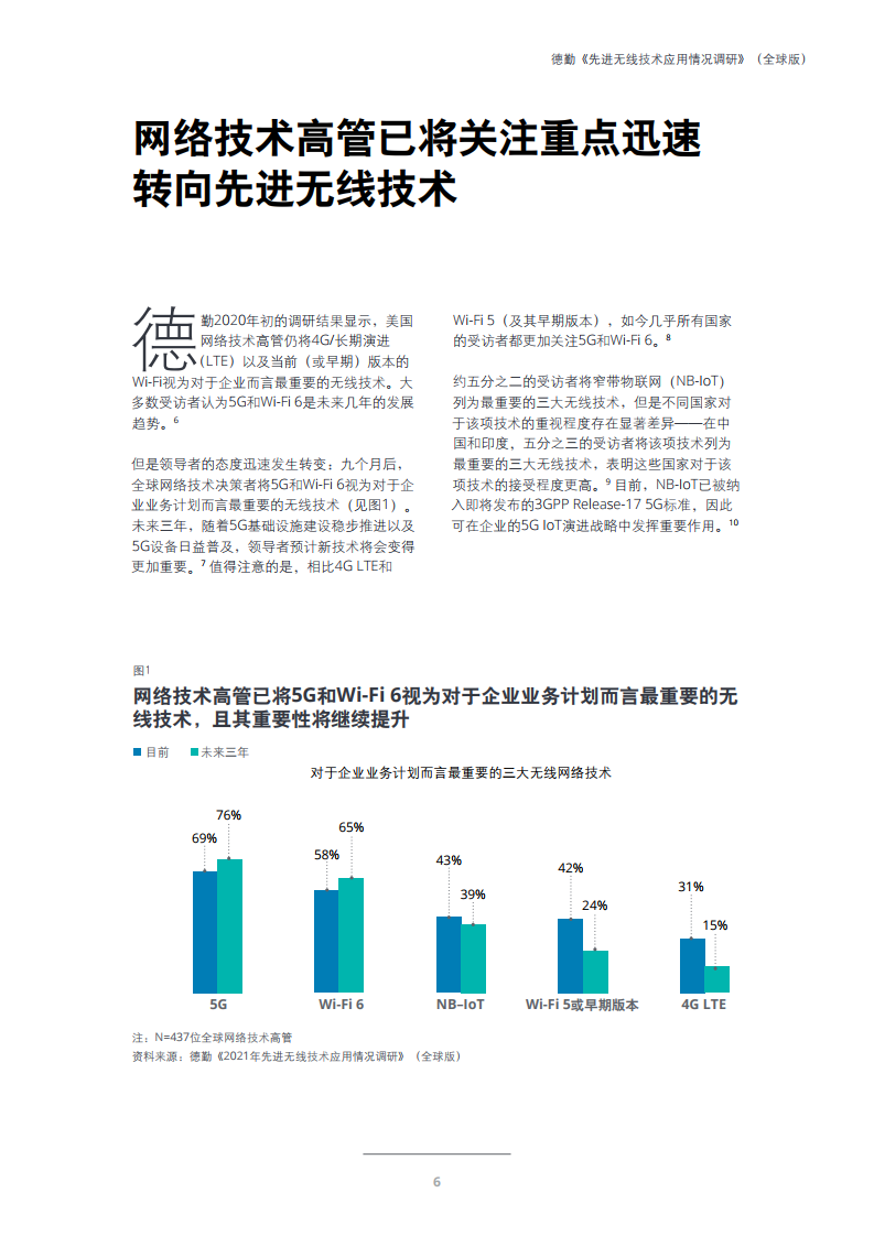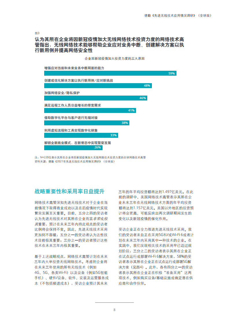 原标题:德勤咨询:2021年先进无线技术应用情况调研报告