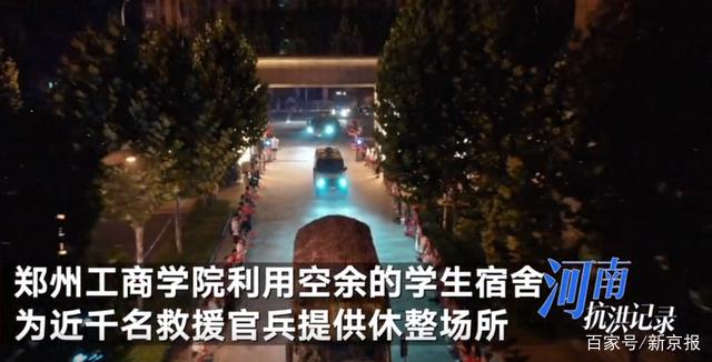 7月22日,郑州工商学院利用空余的学生宿舍,为近千名救援官兵提供休整场所。在校师生得知消息后,自发到校门口和宿舍楼前夹道欢迎,高喊“风雨无情人有情”“河南人民感谢您”“河南加油”等。有学生表示,他们得知解放军战士到学校住宿非常激动,解放军在自己心中一直都是大英雄,大家不能亲自参与抢险救灾,只能用这种方式表达对人民子弟兵的感激。