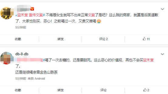 除此之外,有网友直接去益禾堂微博评论区指责益禾堂广告侮辱女性。对此,益禾堂回应称:“已第一时间对事件进行了调查。由于对合作kol发布内容审核不力,给大家造成的情感伤害,我们真诚致歉!目前已删除相关视频,并将对涉及人员严肃处理追责。”(文|AI财经社 夏天)