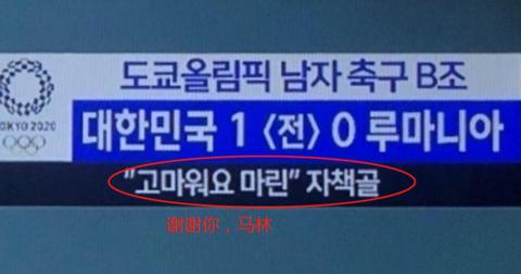 此外,在22日举行的奥运会男子足球小组赛B组第二轮韩国对阵罗马尼亚的比赛中,罗马尼亚选手马里乌斯·马林踢出乌龙球,MBC电视台上半场结束插播广告期间,竟然在屏幕右上角打出“谢谢,马林”的字幕,再次受到舆论的指责。(海外网 刘强)