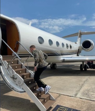 北京时间7月28日 选秀大热杰伦-格林在个人社交媒体中晒出了一张搭载私人飞机的照片。照片中他一身红衣表情得意