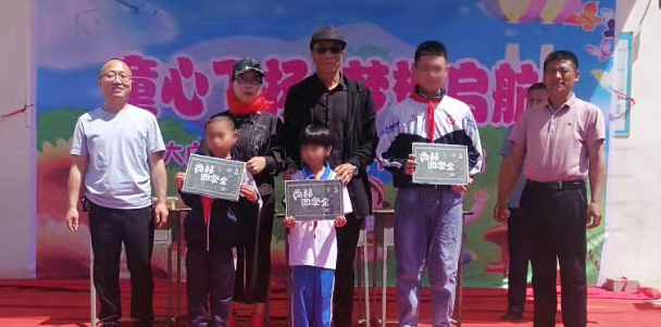 尚赫公益志愿者渠腊梅、刘贵军夫妇(左二、左三)每年都会对捐赠的学校进行回访。