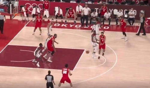 美国队只带了麦基唯一一个大中锋,并且他的出场时间也被波波控制在12分钟以内;追梦、阿德巴约、杜兰特(首发大前锋)、格兰特4个内线都是小球风格,美国队使用无限换防也是无奈之举,现今确实少有年富力强的大中锋,他们只能通过比赛不断精进小球阵的无限换防以及夹击轮转。