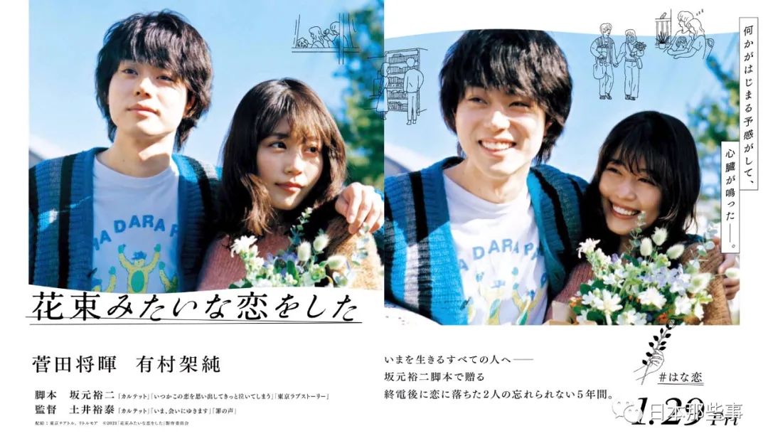 而在电影方面,今年的有村架纯也可谓是开了大招,先是坂元裕二编剧、跟菅田将晖双主演的《花束般的恋爱》上映,