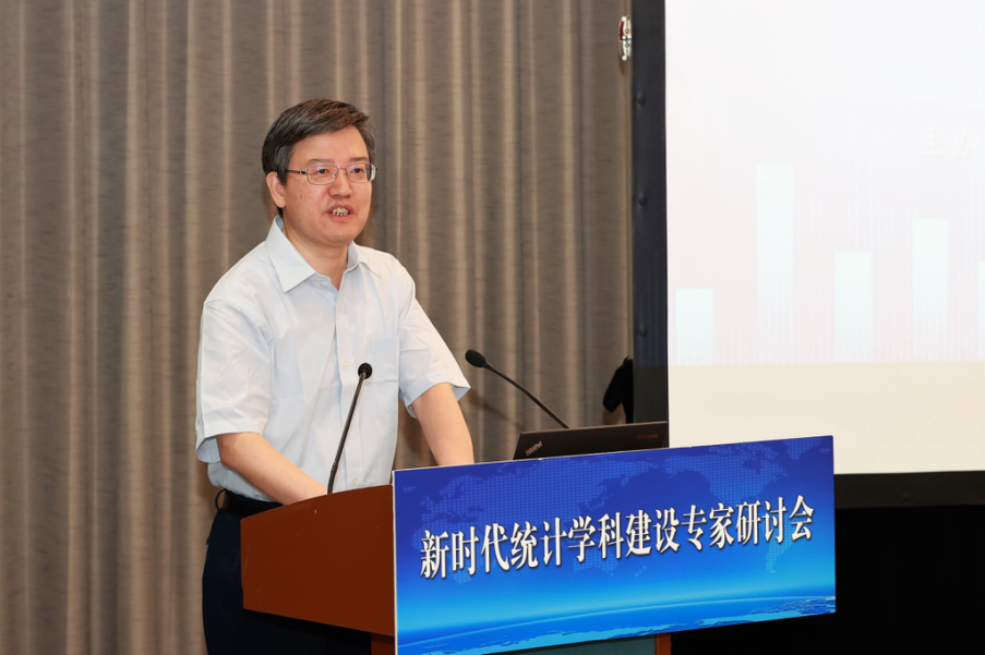 国家统计局总统计师曾玉平致辞,分析了统计学科的发展、统计与数据科学专业的现状,对于统计科研、继续研究推进统计现代化改革的问题提出要求、做出部署,强调统计工作的理念要现代化,统计的标准和指标要现代化,统计调查的制度要现代化,统计的方法手段要现代化,国民经济核算要现代化,统计分析服务要现代化,统计管理体制要协调,统计法制监督要现代化。曾玉平希望各位专家学者畅所欲言,献言献策,共同推进新时代统计学科的建设和发展。