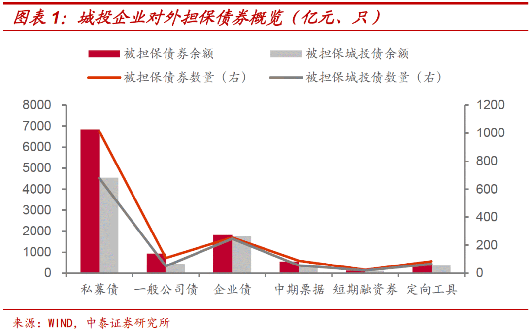 城投企业对外担保一直是投资者较为关心的问题,对外担保事项包括担保人对被担保人的银行贷款和所发行的债券提供不可撤销连带责任担保。我们认为城投企业对外担保债券存在风险的根源在于被担保发债企业的偿债资金链断裂。