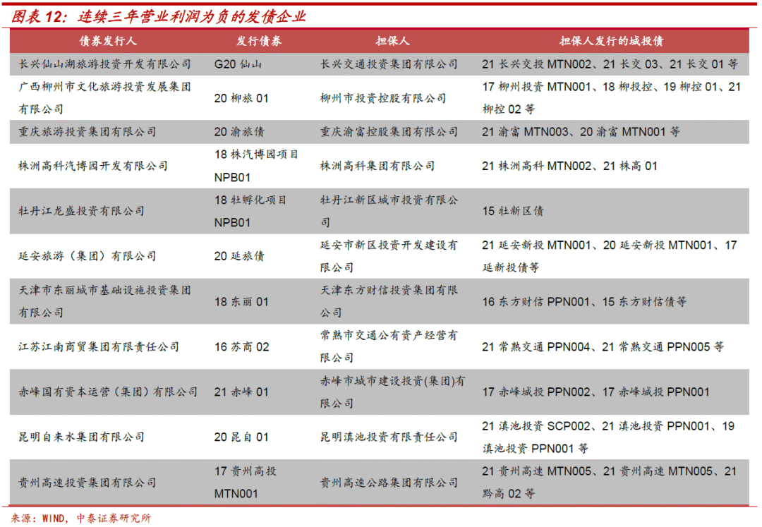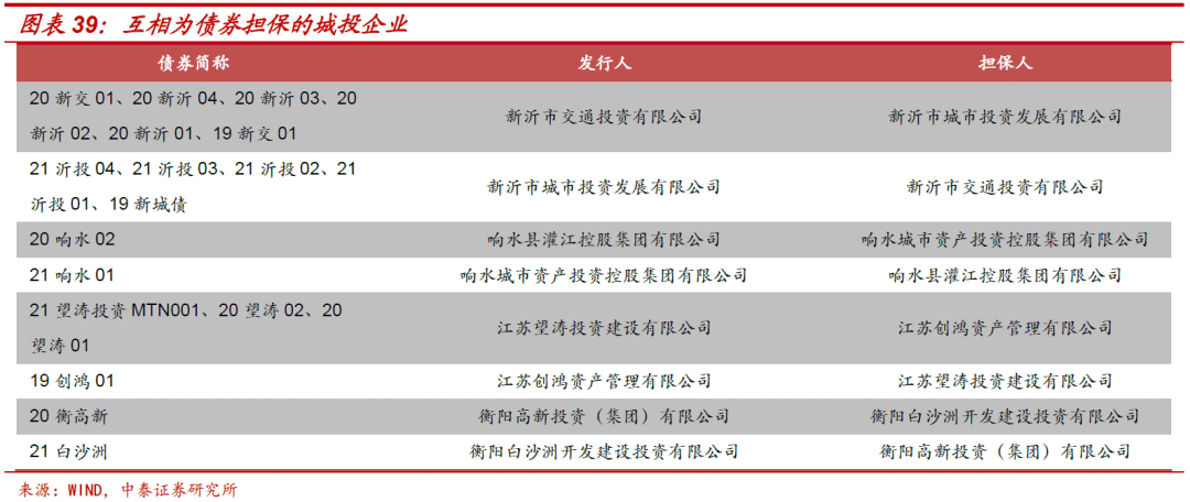 城投企业不仅对外担保城投债,其自身所发的债券又被其他城投企业担保,城投企业之间的互保关系易引发区域系统性风险。此外,部分城投企业会在政府引导下为当地民营企业提供担保,在民企违约潮持续的背景下,为信用资质较弱的民企提供担保在一定程度上会加大其代偿风险。当前地方隐性债务管控升温,城投企业各融资渠道有所收紧,需要警惕城投企业分化带来的偿债风险。