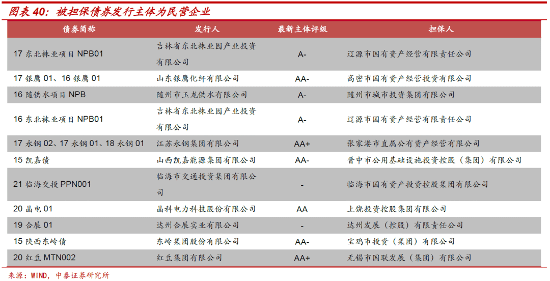 城投企业为民企担保增加其代偿风险。部分城投企业会在政府引导下为当地民营企业提供担保,但民营企业相对于国企抗风险能力较弱。2018年以来,民企违约潮持续,融资渠道收紧进一步加速暴露民营企业的信用风险,城投企业为信用资质较弱的民企提供担保在一定程度上会增加其自身的代偿风险。