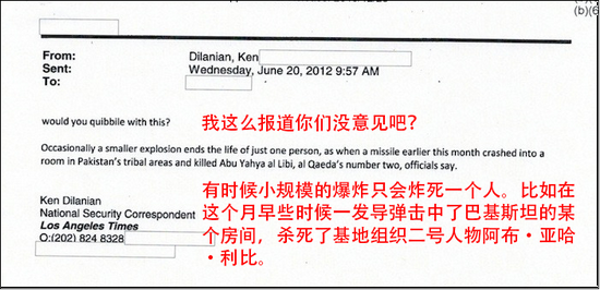 《洛杉矶时报》记者肯·迪兰尼恩发给CIA官员的邮件(The Intercept)