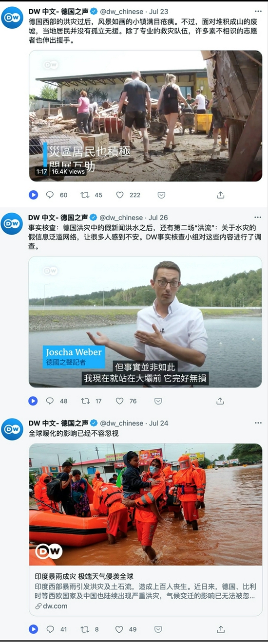 近些日子欧洲、印度、中国相继遭受暴雨或洪水灾害,其中德国和印度目前死亡人数甚至还高于中国。但是《德国之声》在报道印度暴雨的时候只提“全球气候变暖的影响”,报道德国水灾的时候侧重描绘志愿者伸出援手的温馨画面,但是到了河南暴雨,他们就把全部矛头对准了政府和体制。