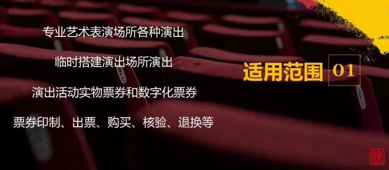《演出票务服务与技术规范》由中国演出行业协会牵头起草,用于统一全国演出票务的基本要求和具体要求,规范购票、检票、退票等流程。对演出票务管理系统、票务销售系统的技术要求、功能、服务器管理、通信、内容与授权文件接收等接口的通信协议和数据格式,以及演出票务数据、采集数据接口等都提出了基本要求。