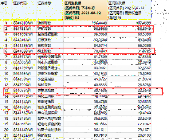 稀有金属板块的权重板块主要为稀土和锂。其中万得稀土指数下半年以来涨幅达70.48%,锂矿指数同期涨幅高达9成以上,而同期两市最火热的锂电池板块涨幅40.16%,新能源涨幅23.79%。