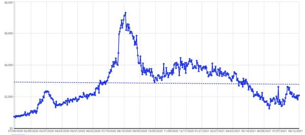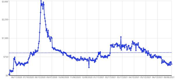 截至8月8日,上述卡片在eBay最新成交价显示为459.5美元,距其去年最高近3000美元的成交价已跌去超六分之五。但与其一年半前约43美元的价格相比,仍涨超10倍。