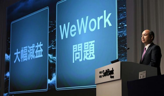 2019年11月,软银发布当年第三季度结算报告,愿景基金投资亏损达89亿美元。其中,共享办公平台WeWork的市场估值严重缩水。
